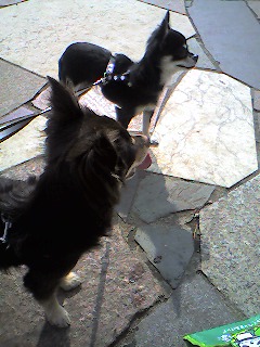 小豆です。 くるみが帰るまであと3日! ということで 最後の仕上げは「公園の散歩」です。 今日は、少し遠くの世田谷公園まで歩いてきました 公園までは人通りの少ない遊歩道をまっすぐ来るだけですが 問題は、この公園が近所の犬さんたちの遊びスポット!ということです はたしてくるみは、公園で会う犬さんたちと仲良くできるだろうか・・・ ハイ、着きました ひろびろとしてるし、天気もよくて最高! 公園には、子供連れのママや幼稚園児が たくさん来ていました。 子供たちには「さわってみたいな」って言われて 小豆も大人気だったよ むむっ、なんだか遠くから犬さんの鳴き声が!! 予想通り、今日は犬さんがたくさん来ていました 広いからノーリードにしてる飼い主さんもいて ちょっと私たち、ピリピリしております。 くるみ、しっかりね!! まだ5ヶ月というチワワの赤ちゃんが、挨拶に来てくれました。 (写真を撮り損ねたのが残念) 飼い主さんがくるみを見て「目がカッコイイね~」と褒めてくれました。 お世辞?? それ以上に、「大きいね~」って言われたけど このチワワちゃんにさえ、くるみは怖がってましたが 公園内のすべての犬さんに吠えずに済みました!!ほっ