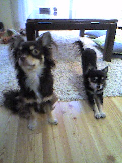 小豆です。 ダラダラしながらお送りしております(スミマセン)。 くるみ合宿、はやいもので2週間が経ちました! 今日は飼い主との反省会です。 *** 小豆(以下小):くるみの様子、どう思う?もう2週間たったけど・・・ 飼い主(以下飼):日によってえらく違うね。 いい子の日もあれば、全然言うこと聞かない日もあるし。 もーマジで疲れた 小:仕方ないじゃん、自分が世話を買って出たんだから。 飼:小豆が一緒になって悪さをするからしつけができないんでしょうが!! せっかくくるみが大人しくしてるのに、あんたが吠えるから くるみが真似して吠えるんだよ!! 小:コワ!! どっか成長したところはないの? 飼:最初に挙げた課題を検証してみよう。 散歩中に人や犬に吠えないようにする・・・× 人には吠えない。 くるみだけで歩いているときは犬にも吠えない。 連れて歩く人間がリードすれば大丈夫。 でも、きっと豆姉と一緒なら吠えまくる。 散歩中は飼い主のペースに合わせる・・・△ くるみだけで歩いているときは大丈夫。 あと、なるべく毎日散歩コースを変えてみるといいのかも。 来客にむやみに吠えないようにする・・・× やたら吠える。小豆が一緒に吠えるからだ!! 手足や尻尾をさわられても怒らないようにする・・・○ 爪やすり特訓、順調。 人の手を噛まないようにする・・・△ 注意したらちょっとは遠慮するようになった。 かむ力が弱くなった。 ちょっとのことでキュンキュン悲しまないようにする・・・△ 注意したらやめるようになった。 小:ふ~ん、あんまり成果出てないね~ 飼い主の威厳ないんじゃないの? 飼:お前のせいだ!! というわけで、検証した結果 明日からはを強化!! お客さんに吠えない特訓をやるよ。 散歩特訓はあきらめる・・・とりあえず1匹で歩けば大丈夫だし。 外で吠えられるのってホント肩身狭いんだよ~ 小:私だって、くるみと歩くのヤだよ~。 会う人会う人に、「えーこのちっちゃい方が親なの~!?」 とか言われるんだもの。 あと、勝手にグイグイ引っ張って ゆっくりクンクンできやしない。 飼:もう2頭引きはこりごりよ。安心しなさい。 ところで今度、くるみをサロンに連れて行くよ。 手足の毛がモッサリしてるし、背中の寝ぐせは直らないし バッサリ切ってもらうんだ 小:まっ、まさかスムースコート!?