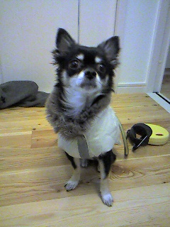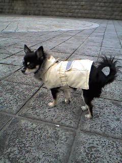 なぜか気取ってますね 小豆はこれを着るとテンションが上がるのか 散歩に連れて行くと走りまくります。