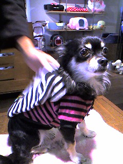 小豆は黒いので、こう見えても似合う色がけっこう難しいんです。