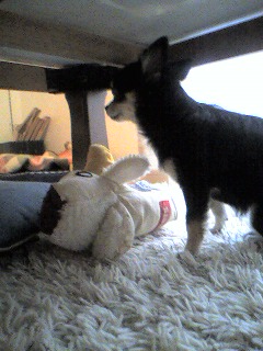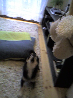 めったに遊ばない私ですが 最近こっていることは、ルームメイトのモーモーとプロレスごっこをすることです モーモーはぜんぜん動かないので、飼い主に頼んで動かしてもらいます。 見よ、普段からは想像できない素早い身のこなし