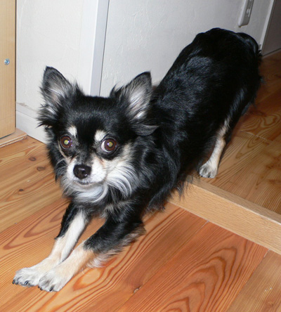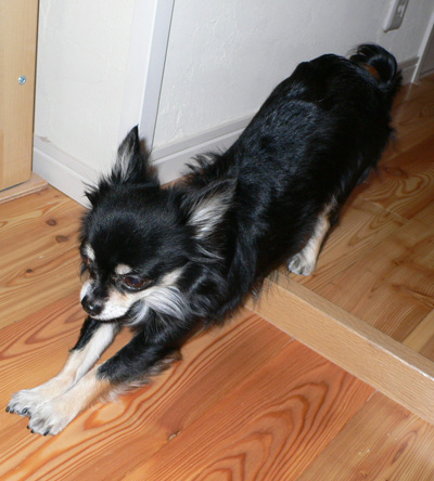 杜けやきです。ようやく写真を撮りました まだ枝もすくなく、幹も細いです。 やっぱ地味だ・・・ 白く見えるのは、冬の病気にならないように 植木屋さんが薬をつけておいてくれたからです。 冬の寒い時期に根っこを傷めるといけないので 植え替えられるのは3月頃。 なので、まだラバーの鉢です 早く春にならないかなあ・・・ 小豆はよくこうしてストレッチをします。 寝て起きると、だいたい3分はやっています。 小豆は背骨が少し曲がっていて 普通に立っていても弓なりに反っているのです。 (猫が怒ってるときみたいな感じです) ずっと寝ていると背中が痛いんでしょうかね。 フローリングが滑るので、股関節を傷めたことも ありました。 今は滑りにくい床に変えたので そちらのほうはいくらか調子がいいようです。 チワワは細くて小さいから大変だなー。