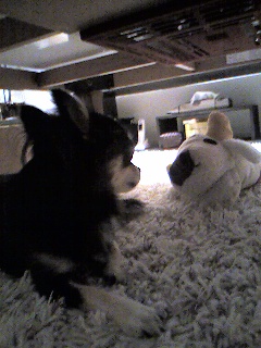 最近 小豆家にやってきたルームメイトと遊ぶことです。