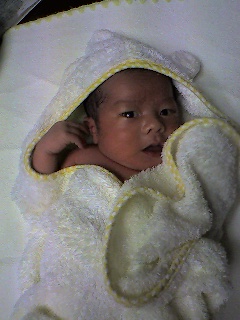 今日、助産士さんがきれいに取ってくれました。ヨカッタヨカッタ