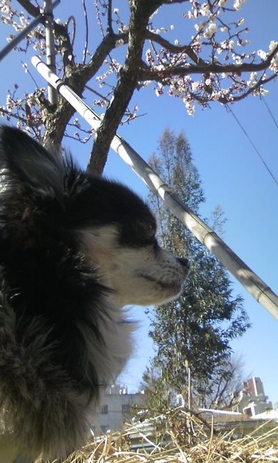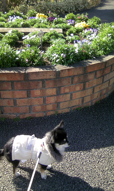 小豆です。 梅の木の下からお届けしております 最近は天気が悪くて なかなか散歩に出られなかったけど 今日は久々に楽しい散歩ができました。 まだまだ寒いけど 梅の花がきれいに咲いていたよ 花壇のお花もキレイ あ~、早く暖かくならないかな~